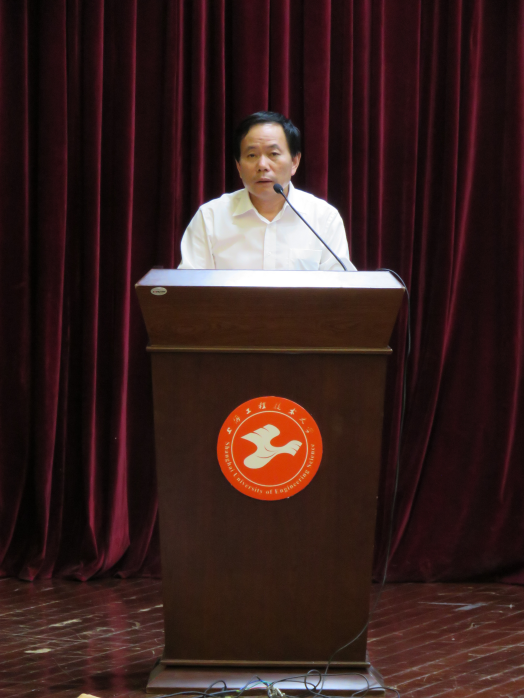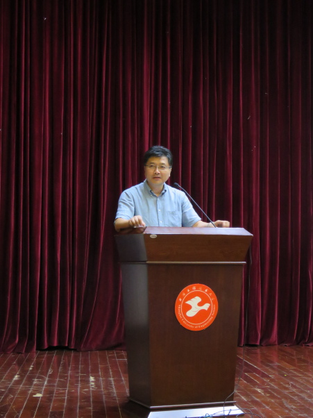 随后,院长周细应教授向新生致辞,周院长首先代表学院向2019级新生表示衷心的祝贺与欢迎。周细应介绍了学院的学科分布、师资力量、专业特色及学院发展现状。周院长勉励大家:做人要先立德,新时代的大学生,既应该是有知识有文化的人,更应该是有道德情操的能人。大学生应有家国情怀,将个人的发展与国家的发展有机的结合起来,在大学里告别以往过于依赖家长的状态,学会自理和自立,养成独立人格,最后他预祝新生在大学里学习顺利,再创辉煌!