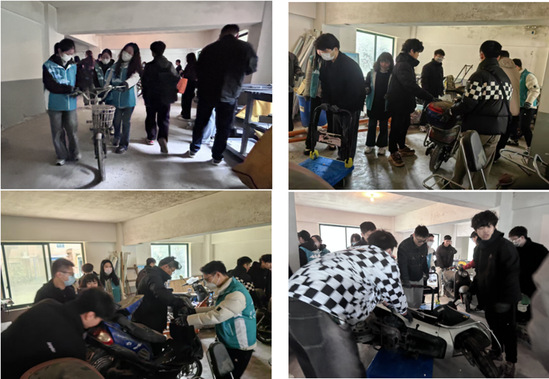志愿者们还分成小组,与社区居民共同前往山水景苑小区127号非机动车停车库开展清洁家园行动。大家齐心协力整理车辆,使停车库焕然一新。