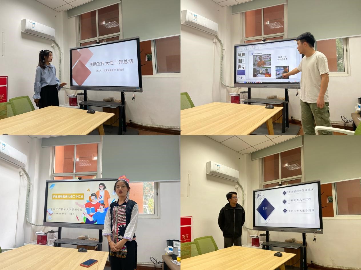 为了鼓励积极参与资助宣传工作的学生,学校资助中心还组织召开了2022年资助宣传大使评审答辩会,对表现优秀的宣传大使进行表彰,并报送表现尤为突出的资助宣传大使代表学校参加上海高校十佳资助宣传大使的评选。