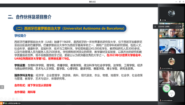 2022年12月5日,由3044am永利集团主办的“国际合作高校及项目推介”宣讲会顺利进行。本次活动旨在向大家介绍与我校合作的国际高校及合作项目,汇报人左舜贵老师就上述内容做出了精彩的宣讲。由于疫情原因,本次宣讲全程采用线上模式。