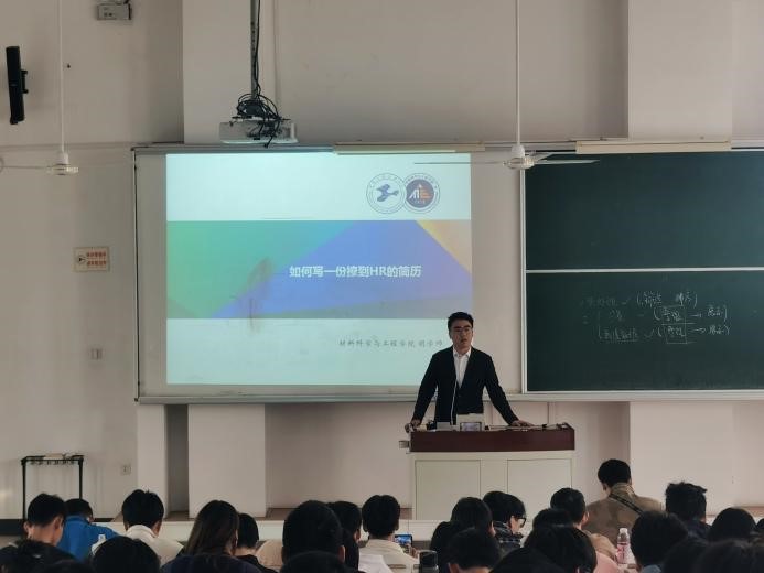 胡学帅同学签约上海电驱动股份有限公司,他从“如何写一份吸引到HR的简历”入手,强调在求职时简历的重要性。认为简历要有真实性、准确性、针对性,同时兼顾个性化。并就制作简历与同学们积极互动,现场反应热烈。