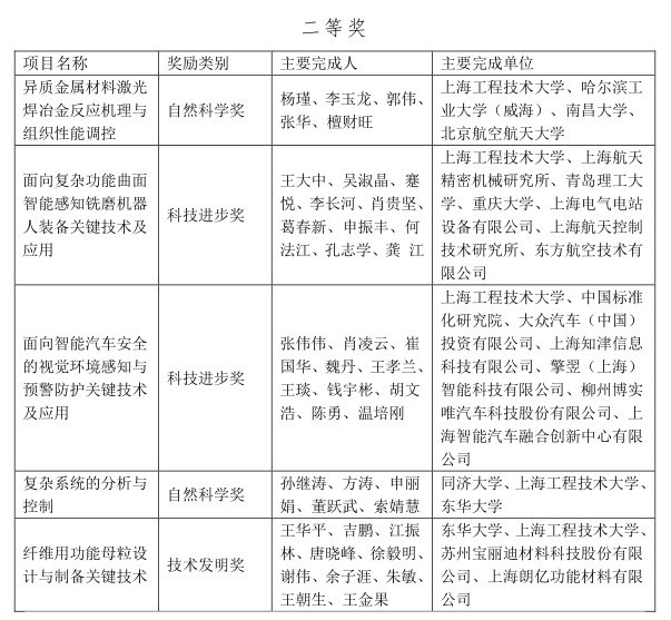 5月26日,2022年度上海市科学技术奖获奖名单正式揭晓。根据《上海市科学技术奖励规定》 (沪府令18号),通过市科学技术奖评审委员会评审,市科学技术奖励委员会审定,经上海市人民政府批准,2022年度上海市科学技术奖授奖316项 (人)。上海工程技术大学此次共获得10个奖项,其中我校作为第一完成单位共有6项,作为合作单位共有4项;获得一等奖2项,二等奖5项,三等奖3项。