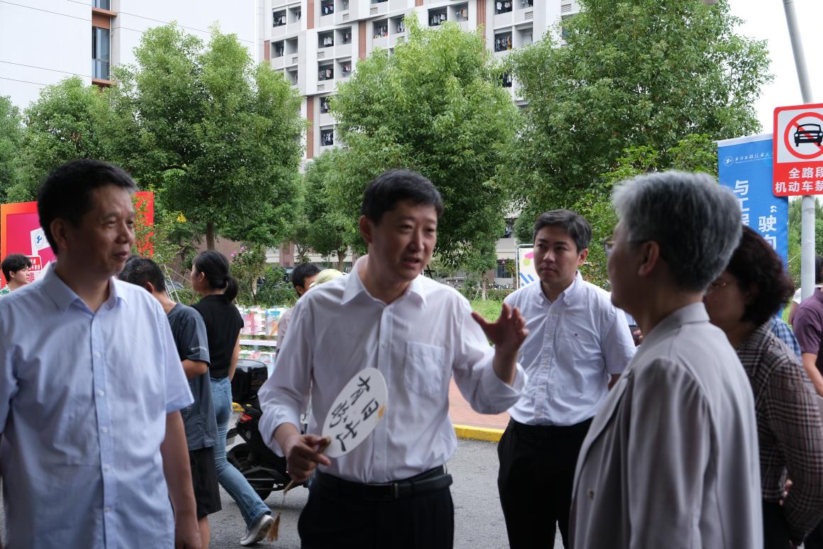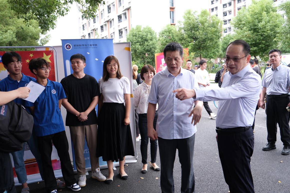 9月15日上午,校党委书记李江,校党委副书记、校长俞涛来到我院迎新现场,检查指导学院迎新工作,深切关心新生报到情况。在详细了解我院迎新点、服务点新生报到流程、志愿服务情况后,对我院的迎新工作给予充分肯定并向迎新工作者的辛勤付出表示了感谢。学院党委书记张朝民,学院党委副书记刘倩,学工组长石玉枝,新生辅导员一起在迎新摊位点为新生办理报到手续,解答新生和家长的问题,欢迎新生的到来。